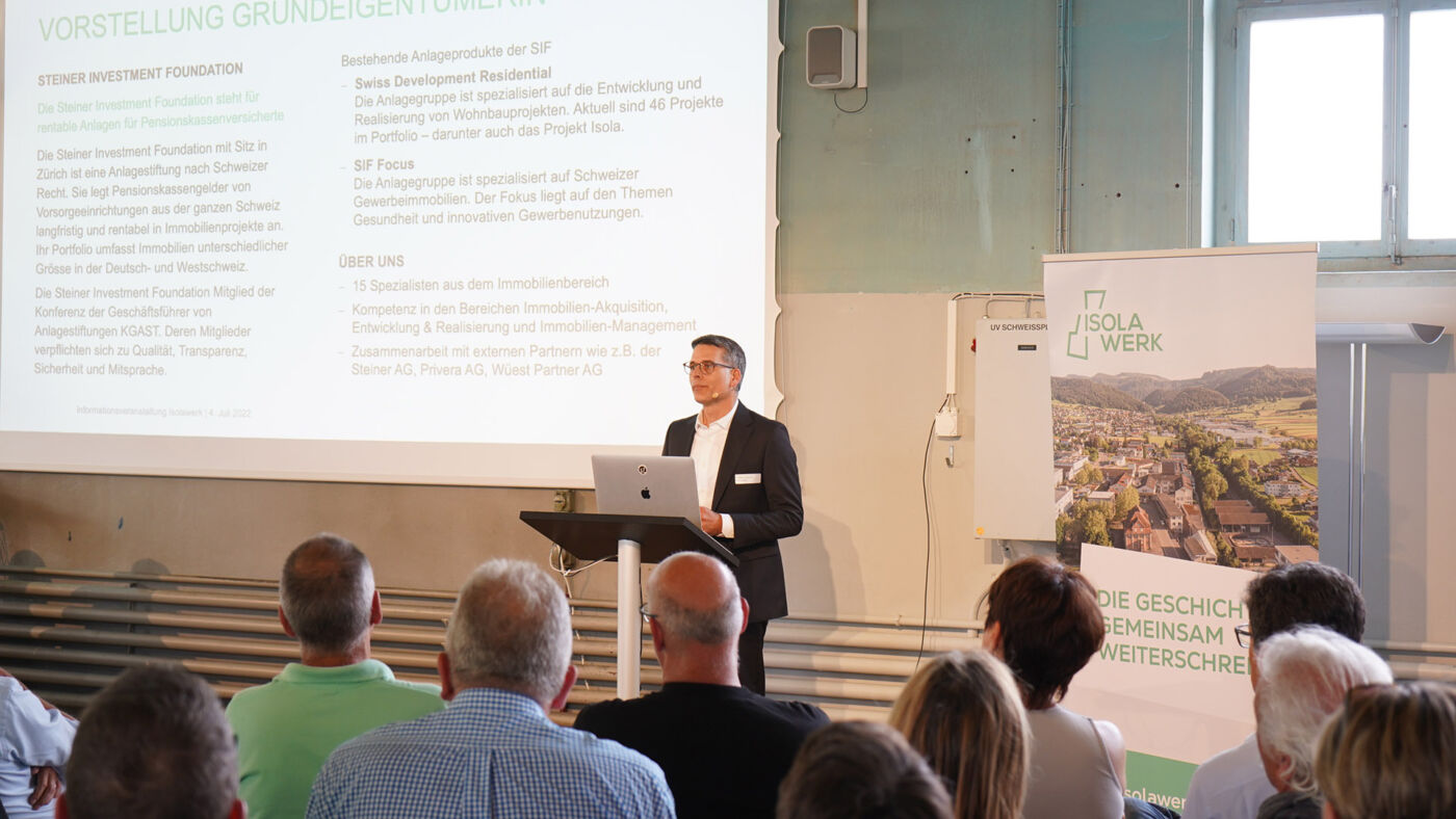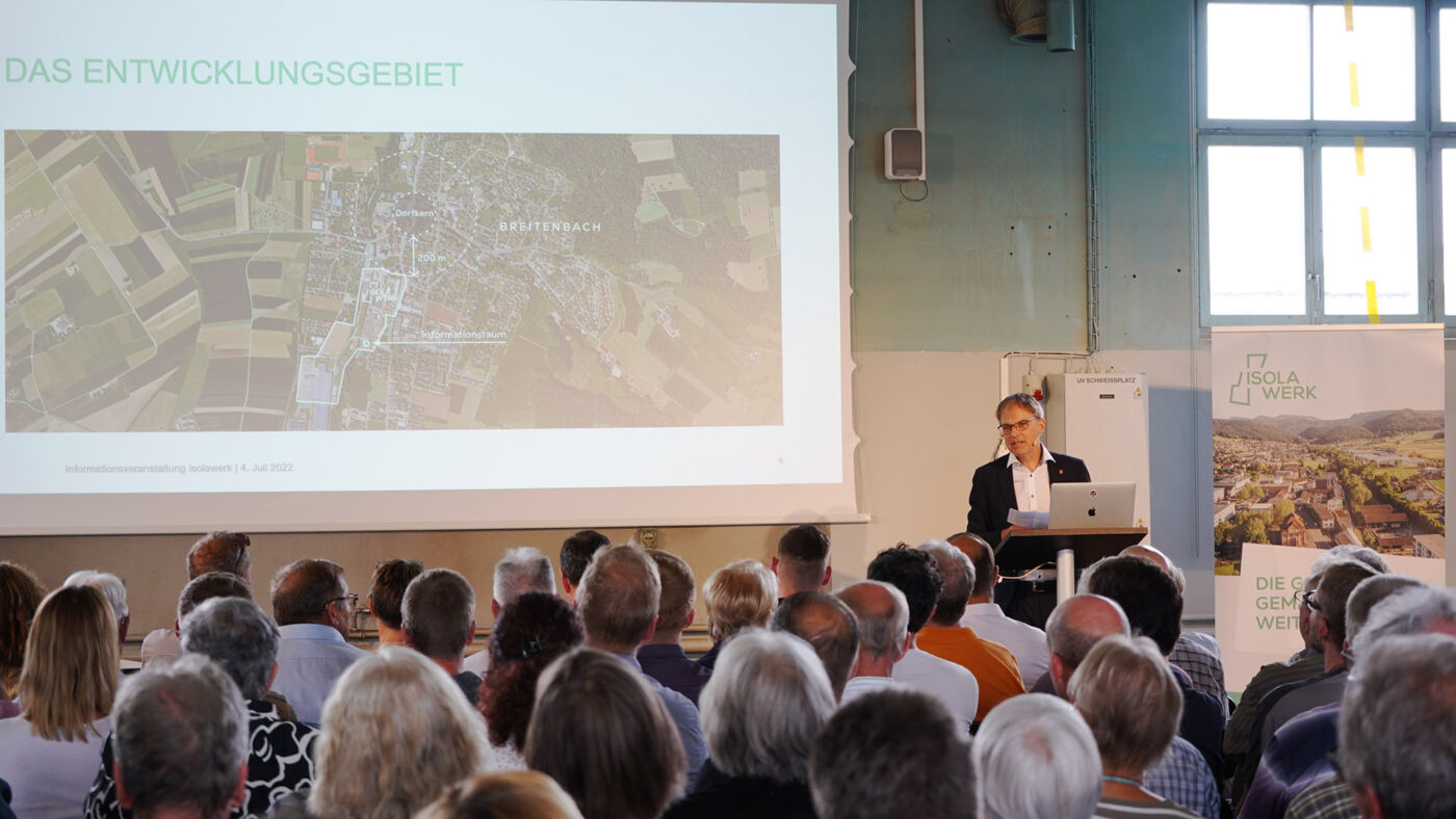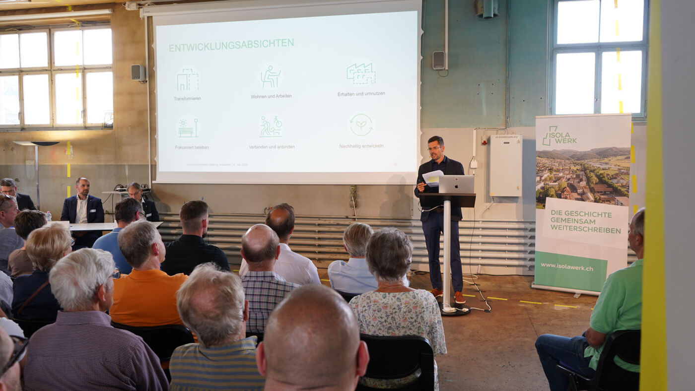 Gut 170 Breitenbacher:innen besuchten am 4. Juli den ersten Informationsanlass auf dem Isolawerk-Areal. Die Projektbeteiligten stellten dabei sich und ihre Vision für die zukünftige Entwicklung vor und beantworteten Fragen aus der Bevölkerung.